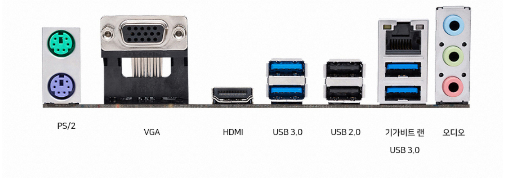 저가형 칩셋인 만큼 범용성을 위해 PS/2 와 VGA 단자 HDMI 를 제공합니다.