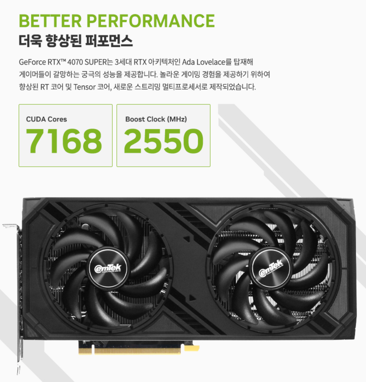 안녕하세요 이엠텍 4070 SUPER STROM X 듀얼 입니다.