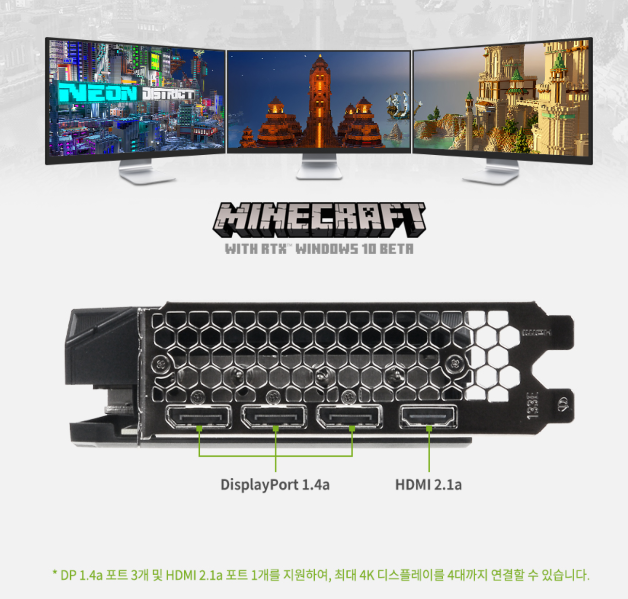 포트는 DP 1.4 3개 HDMI 2.1 한개 지원하고 있습니다.