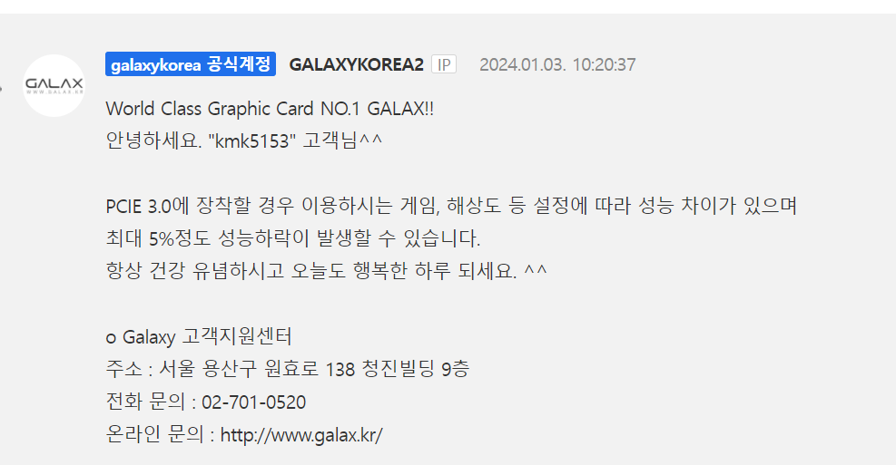 PCIe 3.0에 연결할경우 최대 5%의 성능하락