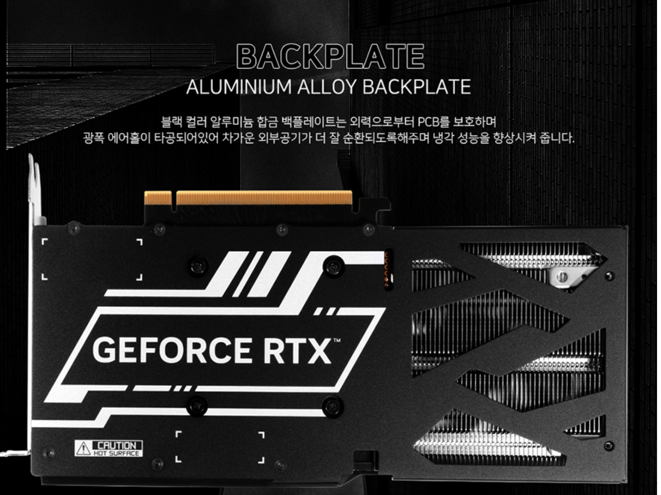 RTX 4060 Ti / 4nm / 베이스클럭: 2310MHz / 부스트클럭: 2550MHz / 스트림 프로세서: 4352개 / PCIe4.0x16(at x8) / GDDR6(DDR6) / 출력단자: HDMI2.1 , DP1.4 / 부가기능: 제로팬(0-dB기술) , 8K 지원 , 4K 지원 , HDR 지원 , HDCP 2.3 / 사용전력: 160W / 정격파워 550W 이상 / 전원 포트: 8핀 x1 / 2개 팬 / 가로(길이): 237mm / 두께: 41mm / 백플레이트 / LED 라이트 / A/S 3년
