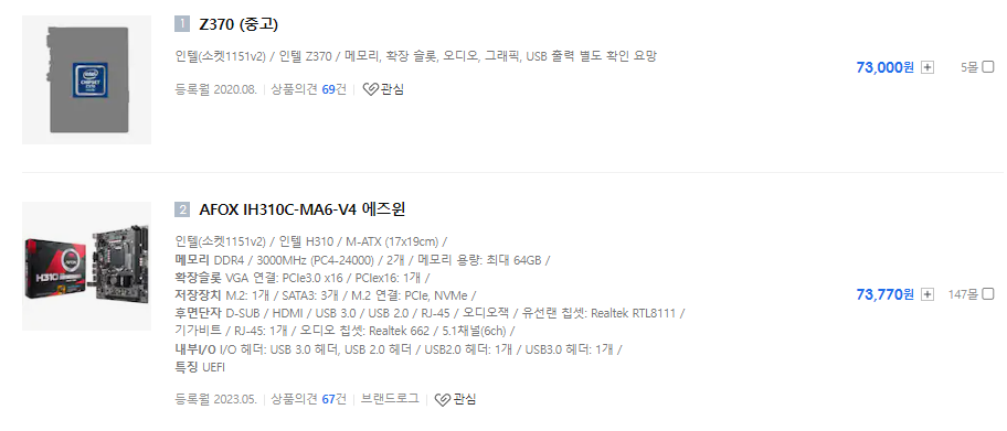 다나와에서 1151v2 메인보드를 낮은 가격순으로 한번 조회해보고 그 중에 신품을 찾아봤습니다!
