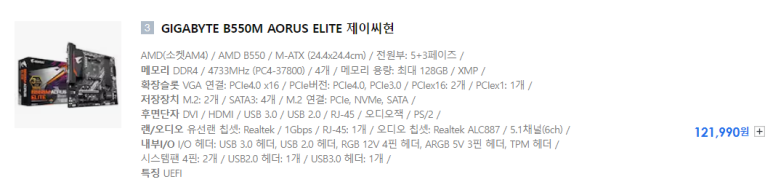 B550M 모델입니다. B550 으로 가면 PCIe 4.0 x 16이 되는 점이 가장 큽니다. 그리고 전반적인 향상이 조금 있습니다. AM4의 가성비 모델! 5800X3D와도 괜찮아 보입니다.