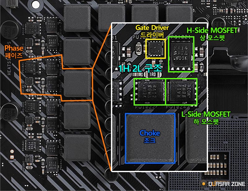 드라이버 모스펫은 일반 모스펫보다 더 빠른 스위칭 속도와 더 전력 처리를 효율적으로 할 수 있습니다. 전압 전류의 스위칭과 전력손실이 줄어드니 효율적인 시스템이라고 할 수 있습니다. 높은 전압과 전류를 안정적으로 제어할 수 있으니, 전압 전류를 적절한 타이밍에 빠르게 제어해서 메인보드에서 각 부품의 요구에 맞춰 전압, 전류 제공시 문제가 없어진다고 보시면 될 것 같습니다. 전력 손실이 줄어든다 = 발열이 내려간다. 라고 보시면 됩니다.