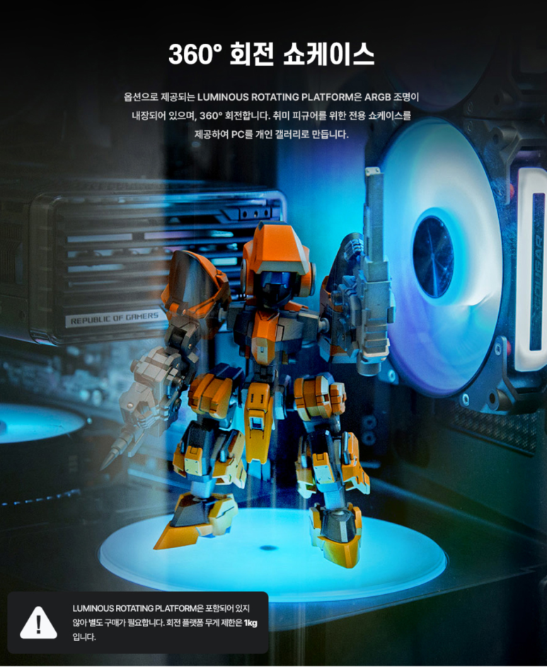 - 360도 회전 쇼케이스 장착 가능(미포함)