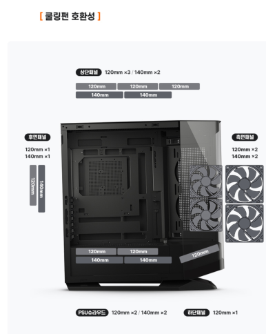 - 하단의 기본팬 1개 이외에는 팬을 다 구매해서 장착해야함