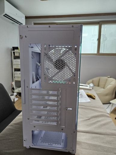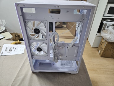 조립후의 사진입니다 무난하고 깔끔하죠. 디자인적으로 괜찮습니다. 기본 제공되는 팬들이 풍속이 조절되는 제품이 아니라 살짝 걱정했는데, 팬의 소음은 거의 없습니다.