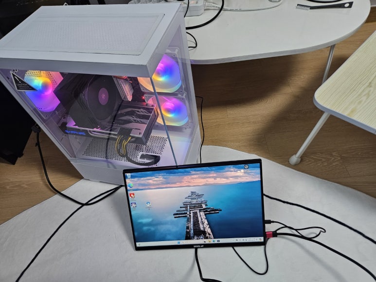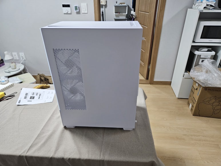 조립은 깔끔하게 끝났ㅅ급니다. 아주 무난합니다. 여기서는 메인보드 24핀을 꼽을때 위로 빼서 해야 하는 살짝의 단점이라면 단점일수 있겠네요. 대신 케이스는 미니멀하니까 한잔하시죠