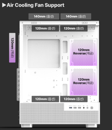 -2 측면 리버스 쿨링팬 2개 후면 정방향 쿨링 팬 1개 기본 제공
